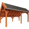 De Kapschuur de Hoeve XL van Trendhout is een stijlvol buitenverblijf met slanke palen van 14.5 x 14.5 cm. Dankzij de toepassing van getoogde schoren krijgt de overkapping een rustieke, landelijke uitstraling. De lage achterzijde creëert een intieme sfeer, terwijl de hoge voorzijde juist een gevoel van ruimte creëert. De kapschuur is verkrijgbaar in meerdere breedtes en een diepte van 3 of 4 meter.