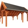 De Kapschuur de Hoeve XL van Trendhout is een stijlvol buitenverblijf met slanke palen van 14.5 x 14.5 cm. Dankzij de toepassing van getoogde schoren krijgt de overkapping een rustieke, landelijke uitstraling. De lage achterzijde creëert een intieme sfeer, terwijl de hoge voorzijde juist een gevoel van ruimte creëert. De kapschuur is verkrijgbaar in meerdere breedtes en een diepte van 3 of 4 meter.
