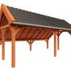 De Kapschuur de Hoeve XL van Trendhout is een stijlvol buitenverblijf met slanke palen van 14.5 x 14.5 cm. Dankzij de toepassing van getoogde schoren krijgt de overkapping een rustieke, landelijke uitstraling. De lage achterzijde creëert een intieme sfeer, terwijl de hoge voorzijde juist een gevoel van ruimte creëert. De kapschuur is verkrijgbaar in meerdere breedtes en een diepte van 3 of 4 meter.