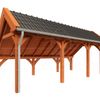 De Kapschuur de Hoeve XL van Trendhout is een stijlvol buitenverblijf met slanke palen van 14.5 x 14.5 cm. Dankzij de toepassing van getoogde schoren krijgt de overkapping een rustieke, landelijke uitstraling. De lage achterzijde creëert een intieme sfeer, terwijl de hoge voorzijde juist een gevoel van ruimte creëert. De kapschuur is verkrijgbaar in meerdere breedtes en een diepte van 3 of 4 meter.