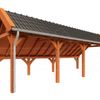 De Kapschuur de Hoeve XL van Trendhout is een stijlvol buitenverblijf met slanke palen van 14.5 x 14.5 cm. Dankzij de toepassing van getoogde schoren krijgt de overkapping een rustieke, landelijke uitstraling. De lage achterzijde creëert een intieme sfeer, terwijl de hoge voorzijde juist een gevoel van ruimte creëert. De kapschuur is verkrijgbaar in meerdere breedtes en een diepte van 3 of 4 meter.