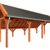 De Kapschuur de Hoeve XL van Trendhout is een stijlvol buitenverblijf met slanke palen van 14.5 x 14.5 cm. Dankzij de toepassing van getoogde schoren krijgt de overkapping een rustieke, landelijke uitstraling. De lage achterzijde creëert een intieme sfeer, terwijl de hoge voorzijde juist een gevoel van ruimte creëert. De kapschuur is verkrijgbaar in meerdere breedtes en een diepte van 3 of 4 meter.