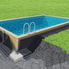 Als een houten zwembad geheel of gedeeltelijk ingegraven wordt, adviseren wij u om de buitenwanden te beschermen met isolatiefolie. Deze folie rot niet en is zeer stootvast. Indien de isolatiefolie correct geplaatst wordt, biedt de folie extra bescherming voor het hout. Bij het opvullen beschermt de folie de houten wanden van het zwembad. De noppenzijde wordt tegen de houten structuur aangelegd om een luchtspleet te creëren tussen de natte afgravingskant en de zwembadwanden. De noppenstructuur zorgt voor een gunstige verdeling van de druk op de afgraving en een lagere puntbelasting (drukvastheid 250 kN/m2).