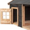 Dit mooie hondenhok geeft jou trouwe viervoeter een veilig beschut plekje. Dit mooie hok heeft een veranda om lekker op te liggen in het zonnetje en is daarbij voorzien van een beschut slaapplekje. Dit slaap plekje is apart te openen met een deurtje, waardoor je gemakkelijk een fijn plekje kan creëren voor jouw hond. Het dak is bedekt met dakleer, dit zorgt voor een goede waterafvoer. Daarnaast is het dak ook opklapbaar waardoor je gemakkelijk overal bij kan. De punt in het dak zorgt voor een luxe uitstraling, perfect voor in jouw tuin!