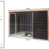 Deze hondenkennel geeft jou trouwe viervoeter een veilig beschut plekje waarbij duurzaamheid en eenvoudig onderhoud samenkomen in een luxe design. Het hok heeft een zijwanden en een voor- en achterwand hierdoor heeft jouw hond geen last van de elementen van het weer en kan hij rustig buiten genieten van de frisse lucht. Aan de voorkant zit een stevig kennelpaneel die beschikt over een deur zodat je makkelijk naar binnen kan. De spijlen zijn 16 mm dik en staan 8cm uit elkaar. Het afvoeren van water is gemakkelijk omdat het dak van de kennel afloopt en is bekleed met dakleer. Een deel van de kennel is windvrij doordat de voorkant ook deels dicht is gemaakt, hierdoor heeft jou hond ook een rustig beschut plekje om te liggen.