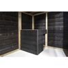 Dit verblijf is gemaakt van Zweeds rabat met een Douglas afwerking. Zweeds rabat zorgt ervoor dat de planken strak in elkaar vallen, wat niet alleen een mooie uitstraling geeft, maar ook regenwater effectief afvoert en het verblijf beter beschermt tegen vocht. Het Douglas hout biedt daarnaast natuurlijke weerstand tegen schimmels en insecten, waardoor het verblijf extra stevig en duurzaam is.