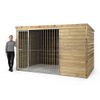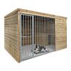Deze hondenkennel geeft jou trouwe viervoeter een veilig beschut plekje waarbij duurzaamheid en eenvoudig onderhoud samenkomen in een luxe design. Het hok heeft een zijwanden en een voor- en achterwand hierdoor heeft jouw hond geen last van de elementen van het weer en kan hij rustig buiten genieten van de frisse lucht. Aan de voorkant zit een stevig kennelpaneel die beschikt over een deur zodat je makkelijk naar binnen kan. De spijlen zijn 16 mm dik en staan 8cm uit elkaar. Het afvoeren van water is gemakkelijk omdat het dak van de kennel afloopt en is bekleed met dakleer. In de kennel zit ook een nachthok, deze is open aan de bovenkant zodat je gemakkelijk een comfortabel plekje kan creëren voor jouw hond. Het nachthok is windvrij doordat de voorkant ook voor een deel gesloten is.