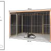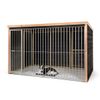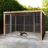 Deze hondenkennel geeft jou trouwe viervoeter een veilig beschut plekje waarbij duurzaamheid en eenvoudig onderhoud samenkomen in een luxe design. Het hok heeft een zijwanden en een voor- en achterwand hierdoor heeft jouw hond geen last van de elementen van het weer en kan hij rustig buiten genieten van de frisse lucht. Aan de voorkant zit een stevig kennelpaneel die beschikt over een deur zodat je makkelijk naar binnen kan. De spijlen zijn 16 mm dik en staan 8cm uit elkaar. Het afvoeren van water is gemakkelijk omdat het dak van de kennel afloopt en is bekleed met dakleer.