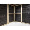 Dit verblijf is gemaakt van Zweeds rabat met een Douglas afwerking. Zweeds rabat zorgt ervoor dat de planken strak in elkaar vallen, wat niet alleen een mooie uitstraling geeft, maar ook regenwater effectief afvoert en het verblijf beter beschermt tegen vocht. Het Douglas hout biedt daarnaast natuurlijke weerstand tegen schimmels en insecten, waardoor het verblijf extra stevig en duurzaam is.