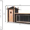 Deze hondenkennel geeft jou trouwe viervoeter een veilig beschut plekje waarbij duurzaamheid en eenvoudig onderhoud samenkomen in een luxe design. Het hok heeft een zijwanden en een voor- en achterwand hierdoor heeft jouw hond geen last van de elementen van het weer en kan hij rustig buiten genieten van de frisse lucht, en er komt voldoende licht naar binnen. Aan de voorkant zit een stevig kennelpaneel die beschikt over een deur zodat je makkelijk naar binnen kan. De spijlen zijn 16 mm dik en staan 8cm uit elkaar. Het afvoeren van water is gemakkelijk omdat het dak van de kennel afloopt en is bekleed met dakleer. Aan de kennel zit ook een ruim nachthok, met een hooiberg design. Deze beschikt ook over een deur welke voorzien is van plexiglas, door de lengte kan je gemakkelijk een comfortabel plekje kan creëren voor jouw hond. Het nachthok en de kennel hebben een open doorloop waardoor jouw hond zelf kan kiezen of hij naar buiten of binnen wilt.