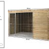 Deze hondenkennel geeft jou trouwe viervoeter een veilig beschut plekje waarbij duurzaamheid en eenvoudig onderhoud samenkomen in een luxe design. Het hok heeft een zijwanden en een voor- en achterwand hierdoor heeft jouw hond geen last van de elementen van het weer en kan hij rustig buiten genieten van de frisse lucht. Aan de voorkant zit een stevig kennelpaneel die beschikt over een deur zodat je makkelijk naar binnen kan. De spijlen zijn 16 mm dik en staan 8cm uit elkaar. Het afvoeren van water is gemakkelijk omdat het dak van de kennel afloopt en is bekleed met dakleer. Een deel van de kennel is windvrij doordat de voorkant ook deels dicht is gemaakt, hierdoor heeft jou hond ook een rustig beschut plekje om te liggen.