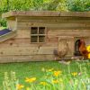 Bied jouw kippen een veilig en comfortabel buitenleven met een houten kippenhok. Dit verblijf is bedoeld als nachtverblijf in jouw kippenren en combineert duurzaamheid en eenvoudig onderhoud waarbij de kippen beschut zijn door een dak bedekt met dakleer. Het hok is voorzien van een binnenverblijf waar je makkelijk bij kan door een opklapbaar dak. Aan het verblijf zit een legnest met een opklapbaar dak waardoor je makkelijk de eitjes kan pakken.