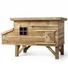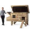 Bied jouw kippen een veilig en comfortabel buitenleven met een houten kippenhok. Dit verblijf is bedoeld als nachtverblijf in jouw kippenren en combineert duurzaamheid en eenvoudig onderhoud waarbij de kippen beschut zijn door een dak bedekt met dakleer. Het hok is voorzien van een binnenverblijf waar je makkelijk bij kan door een opklapbaar dak. Aan het verblijf zit een legnest met een opklapbaar dak waardoor je makkelijk de eitjes kan pakken. Dit hok staat verhoogd waardoor het in het koude weer wat warmer en comfortabeler is voor jouw pluimvee.