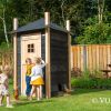 Dit verblijf is gemaakt van Zweeds rabat met een Douglas afwerking. Zweeds rabat zorgt ervoor dat de planken strak in elkaar vallen, wat niet alleen een mooie uitstraling geeft, maar ook regenwater effectief afvoert en het verblijf beter beschermt tegen vocht. Het Douglas hout biedt daarnaast natuurlijke weerstand tegen schimmels en insecten, waardoor het verblijf extra stevig en duurzaam is