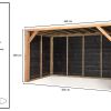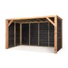Dit verblijf is gemaakt van Zweeds rabat met een Douglas afwerking. Zweeds rabat zorgt ervoor dat de planken strak in elkaar vallen, wat niet alleen een mooie uitstraling geeft, maar ook regenwater effectief afvoert en het verblijf beter beschermt tegen vocht. Het Douglas hout biedt daarnaast natuurlijke weerstand tegen schimmels en insecten, waardoor het verblijf extra stevig en duurzaam is.