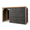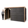 Dit verblijf is gemaakt van Zweeds rabat met een Douglas afwerking. Zweeds rabat zorgt ervoor dat de planken strak in elkaar vallen, wat niet alleen een mooie uitstraling geeft, maar ook regenwater effectief afvoert en het verblijf beter beschermt tegen vocht. Het Douglas hout biedt daarnaast natuurlijke weerstand tegen schimmels en insecten, waardoor het verblijf extra stevig en duurzaam is.