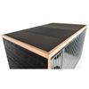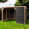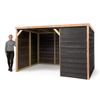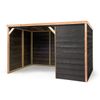 Dit verblijf is gemaakt van Zweeds rabat met een Douglas afwerking. Zweeds rabat zorgt ervoor dat de planken strak in elkaar vallen, wat niet alleen een mooie uitstraling geeft, maar ook regenwater effectief afvoert en het verblijf beter beschermt tegen vocht. Het Douglas hout biedt daarnaast natuurlijke weerstand tegen schimmels en insecten, waardoor het verblijf extra stevig en duurzaam is.