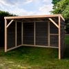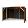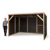 Dit verblijf is gemaakt van Zweeds rabat met een Douglas afwerking. Zweeds rabat zorgt ervoor dat de planken strak in elkaar vallen, wat niet alleen een mooie uitstraling geeft, maar ook regenwater effectief afvoert en het verblijf beter beschermt tegen vocht. Het Douglas hout biedt daarnaast natuurlijke weerstand tegen schimmels en insecten, waardoor het verblijf extra stevig en duurzaam is.