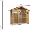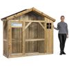 Bied jouw vogels een veilig en comfortabel buitenleven met een houten volière vlucht. Dit verblijf combineert duurzaamheid, eenvoudig onderhoud waarbij de vogels beschut zijn door een dak bedekt met dakleer. Het nachtverblijf en wat extra opbergruimte zit hierbij aan de rechter kant. Ook zit er een deur in met een twee-baks voersysteem waardoor je rustig kan voeren zonder gevaar voor ontsnapping. De zitstokken hier zitten in de vlucht, deze is voorzien van gaas. Het gaas is 13 x 13 x 0,8 mm, hierdoor kunnen de vogels ongestoord hun vleugeltjes strekken en heb jij er een goed zicht op!