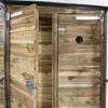 Het nachtverblijf zit links en is voorzien van een dak bedekt met dakleer en een sluisdeur. De sluisdeur zorgt ervoor dat jou vogels niet gemakkelijk weg kunnen vliegen. Het nachtverblijf is voorzien van zitstokken dit zorgt er voor dat jouw vriendjes comfortabel kunnen schuilen. In de deur zit een twee-baks voedersysteem waardoor je rustig kan voeren zonder gevaar voor ontsnapping
